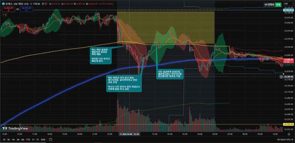오늘 나스닥 100 시장은 직장인 트레이더에게 인내심을 요구하는 하루였습니다. 특별한 경제 지표 발표나 이슈가 없는 상황에서 차트는 좁은 폭의 움직임만을 반복했죠. 이럴 때일수록 조급함은 독이 됩니다.